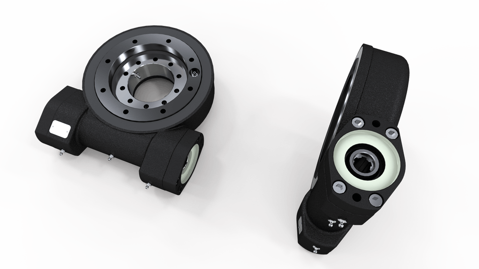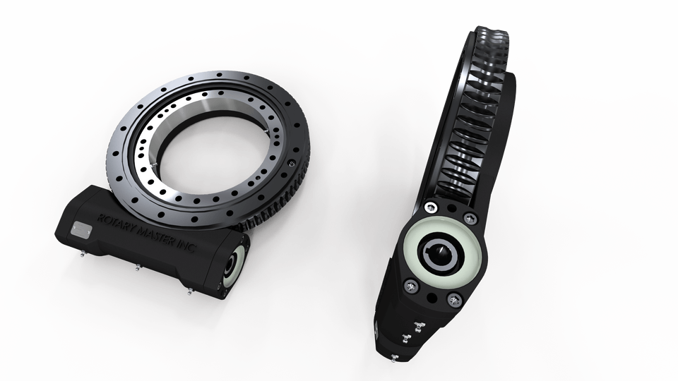 The mechanics behind it is built on the concept of a worm wheel where a slewing ring with external teeth is meshed with complementing worm gear with a predefined gear ratio. Internal components are contained and assembled inside a cast iron or aluminum housing for protection and installation.